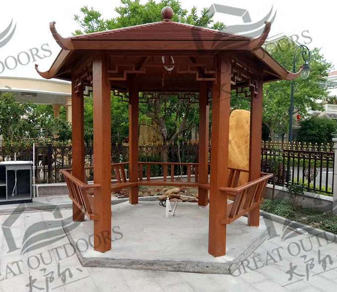 长春佳铭自然资源开发有限公司凉亭系列产品是采用高强度铝合金为原材料,经酸洗铬化,电泳或静电喷涂,木纹转印处理后,精密定制设计,保障安装。它具有防水防潮,不膨胀不变形,防腐蚀,具有逼真的木质感。成为别墅住宅及市政园林等建筑美丽的风景。
